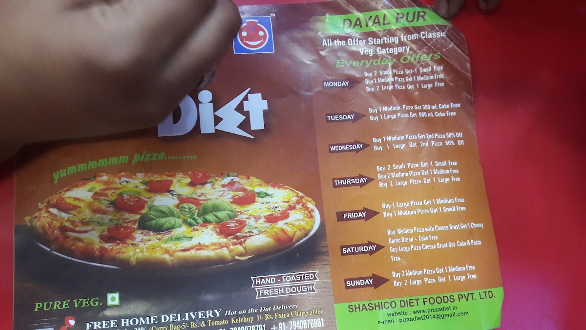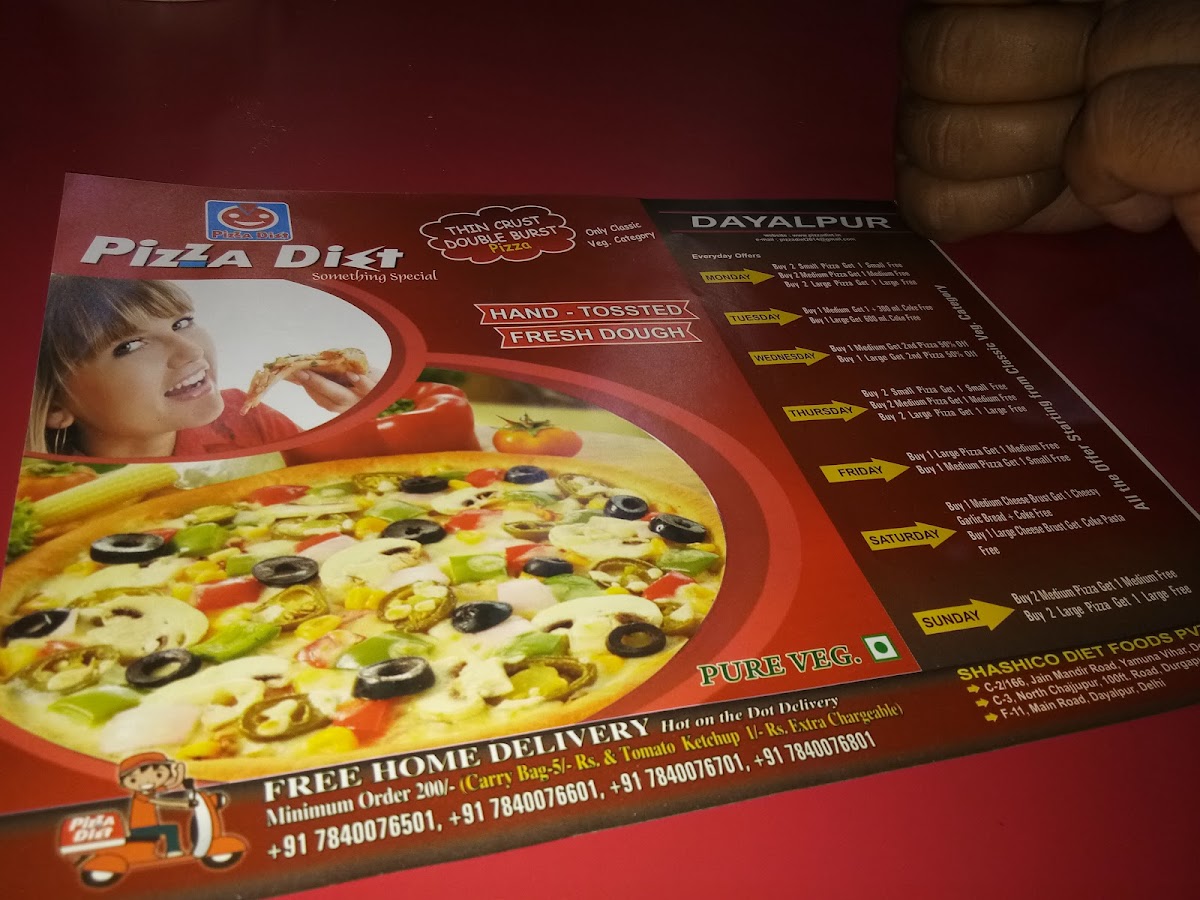 Welcome to Pizza Diet, Dayalpur, where the art of pizza-making meets a delightful fusion of flavors in every slice! Located in the heart of Dayalpur, this charming pizzeria offers a diverse menu that caters to every palate.